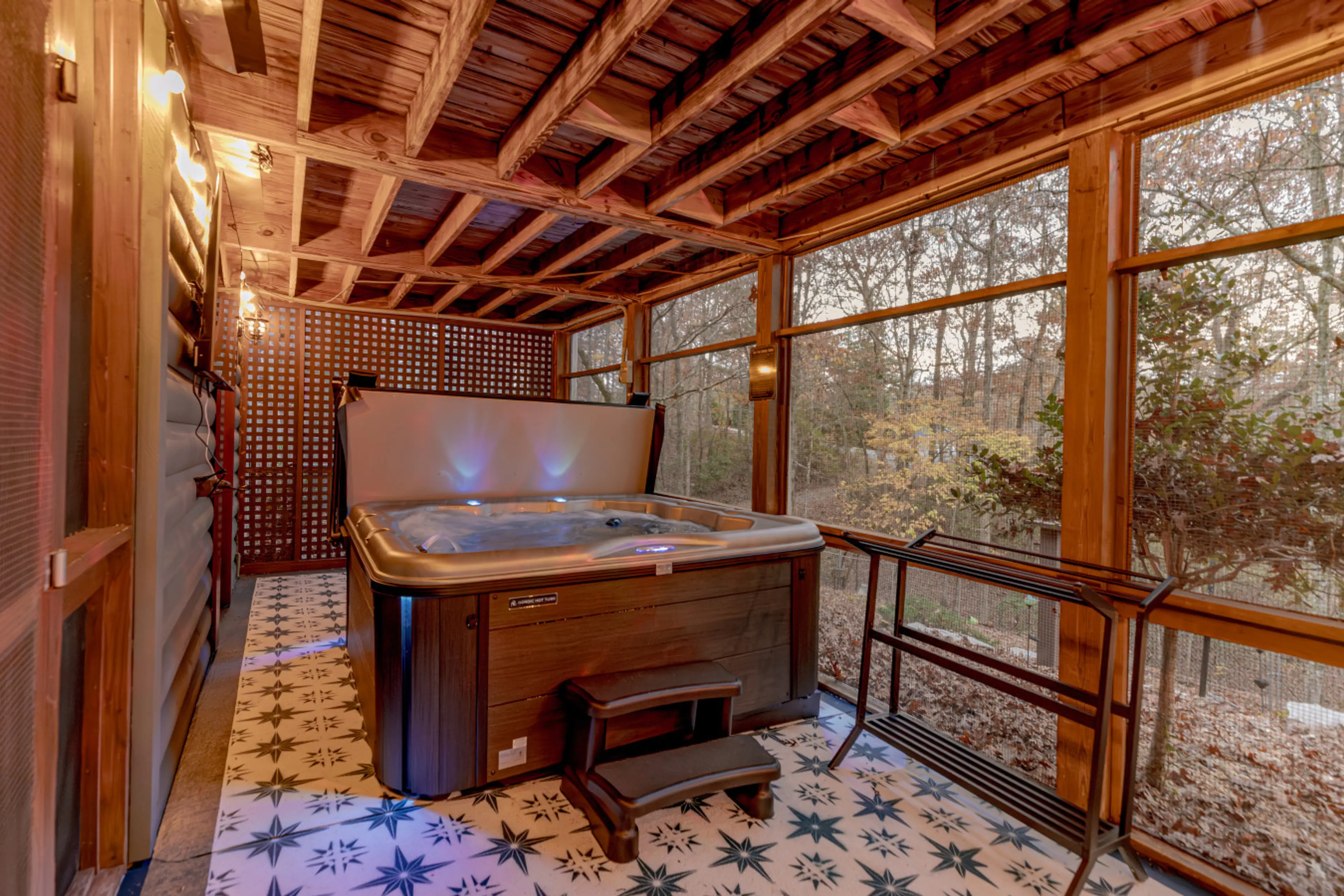 You're about to book a one-of-one cabin experience. Unwind in a luxury 2-bedroom, 2-bath cabin designed for comfort, connection, and calm. Soak beneath the stars in your private AquaLife ozone hot tub with TV, or cozy up fireside with a glass of wine. The two-story deck and gazebo offer unmatched m...